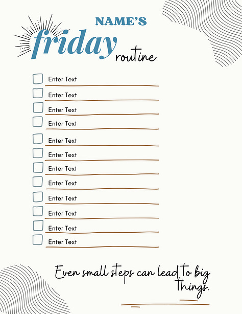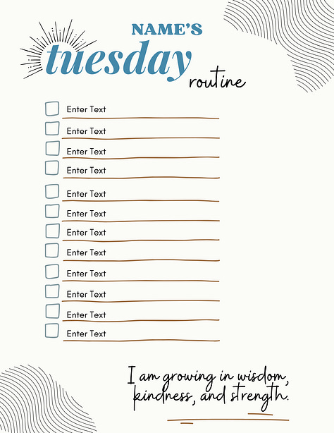 It’s nothing fancy, just a rotating checklist for each day of the week with a truth to anchor the day (“I am growing in wisdom, kindness, and strength.” Yes, even before breakfast 🍳).