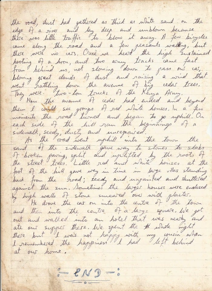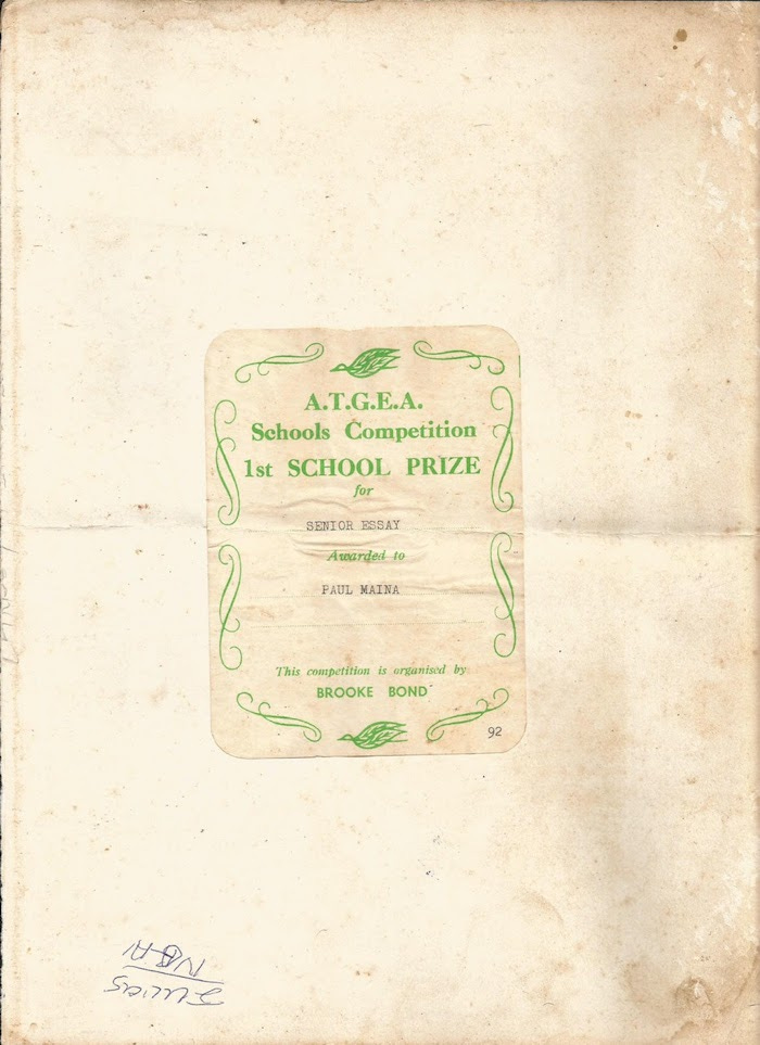 At the time, in colonial Kenya, the British tea company Brooke Bond sponsored educational awards across the country. Schools competed in categories like art, essay writing, handwriting, and books were given as prizes for excellence.